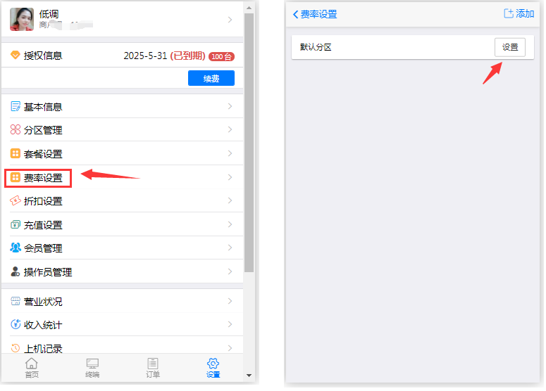 在设置--->费率设置---选择要设置的分区---->设置