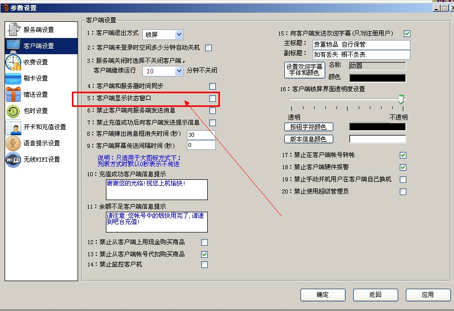 把 "客户端状态显示窗口" 去掉对勾,然后重启客户机电脑,就可以了