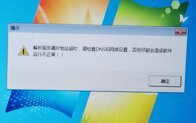 打开服务端软件,提示:解析服务器ip地址超时,请检查DNS和网络设置,否则可能会造成软件运行不正常
