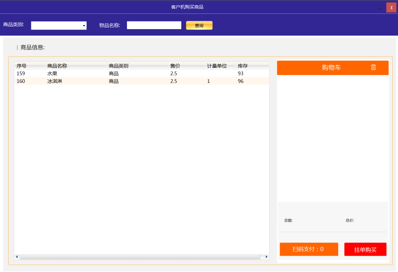 系统会弹窗显示,可以根据商品类别,物品名称搜索,默认全部显示,