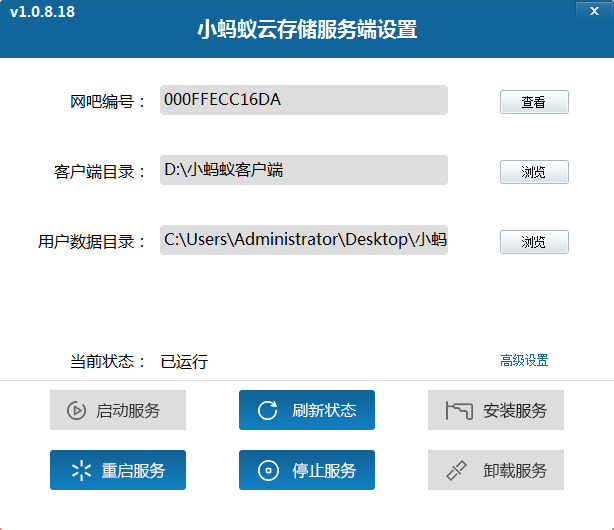 总服务端小蚂蚁文件中会显示网吧编号的文件夹数据