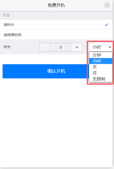 可以按时长或按结束时间来免费开机