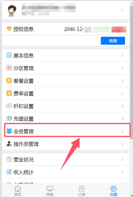 右下角点 设置—— 会员管理——点右上角 输入会员昵称 搜索 到会员后 点充值 即可给会员 手动充值了;