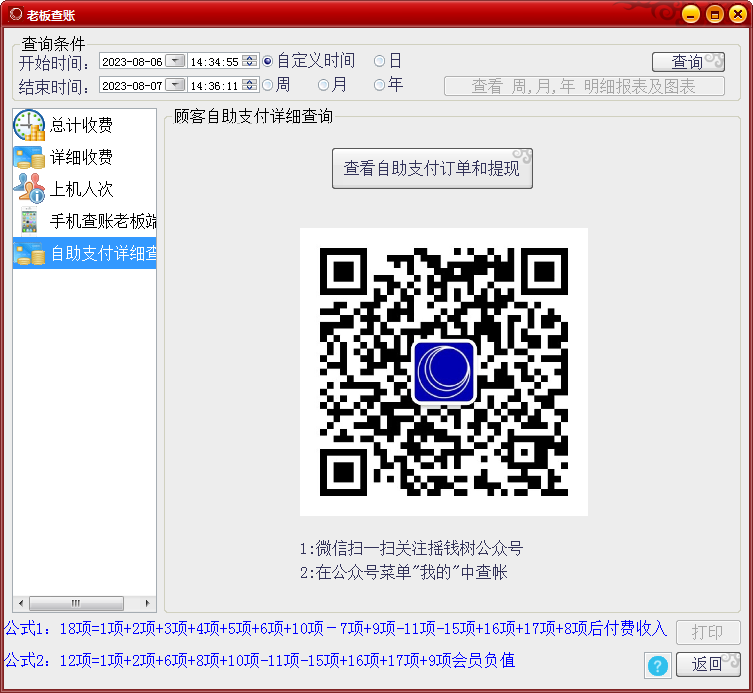 (如果想要老板查账里面不显示自助支付的金额,可以在软件的系统设置 设置参数--服务端设置 第20项去掉勾选即可)