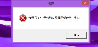错误号:5 无效的过程调用或参数 行13