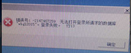 错误号:-2147467259 无法打开登录所请求的数据库 wbgl2015 登录失败 行13
