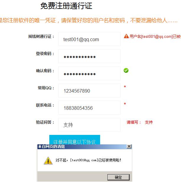 邮箱已被注册 已经被使用