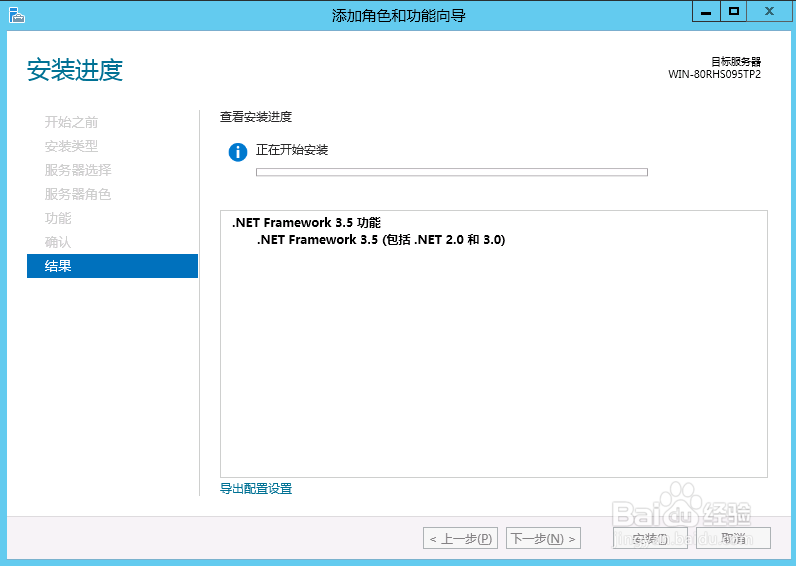 点击“安装”,即开始安装.NET Framework 3.5,等安装完成后关闭即可